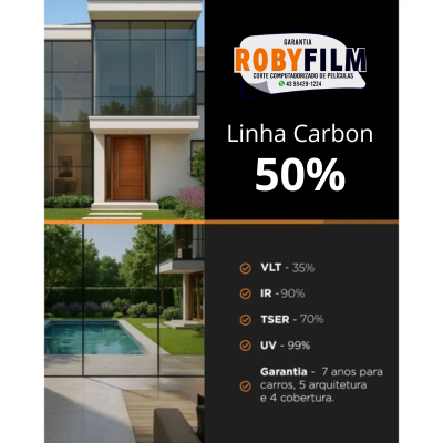 A Película Profissional Linha Carbon da RobyFilm é a escolha inteligente para quem busca durabilidade e desempenho. Desenvolvida com tecnologia de ponta desde 2009, esta linha se destaca pela estabilidade de cor e alta rejeição de calor, superando as películas tintadas comuns do mercado.