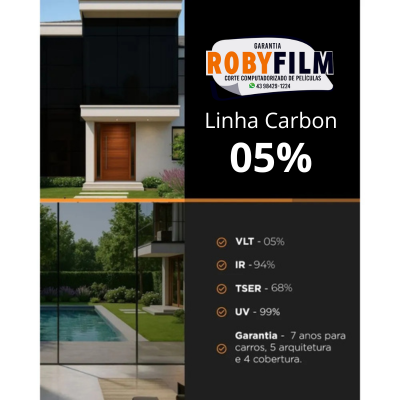A Película Profissional Linha Carbon da RobyFilm é a escolha inteligente para quem busca durabilidade e desempenho. Desenvolvida com tecnologia de ponta desde 2009, esta linha se destaca pela estabilidade de cor e alta rejeição de calor, superando as películas tintadas comuns do mercado.